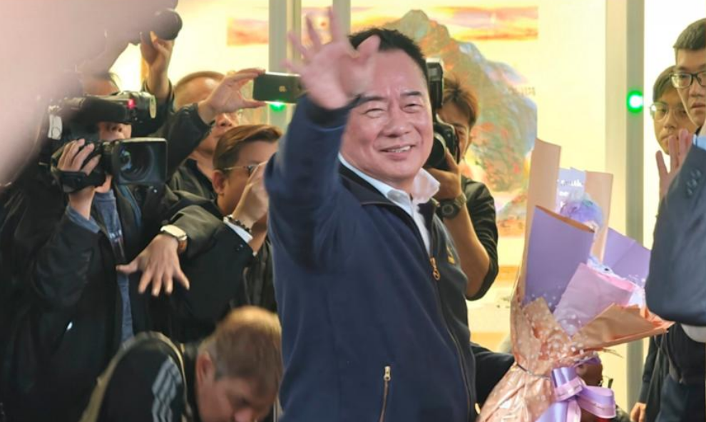 蔡正元对众人挥手作别台媒