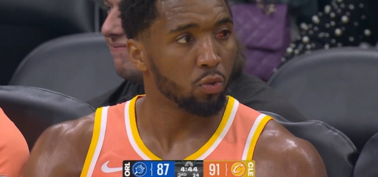 还没恢复好!米切尔替补席呆坐 左眼球仍有明显淤血